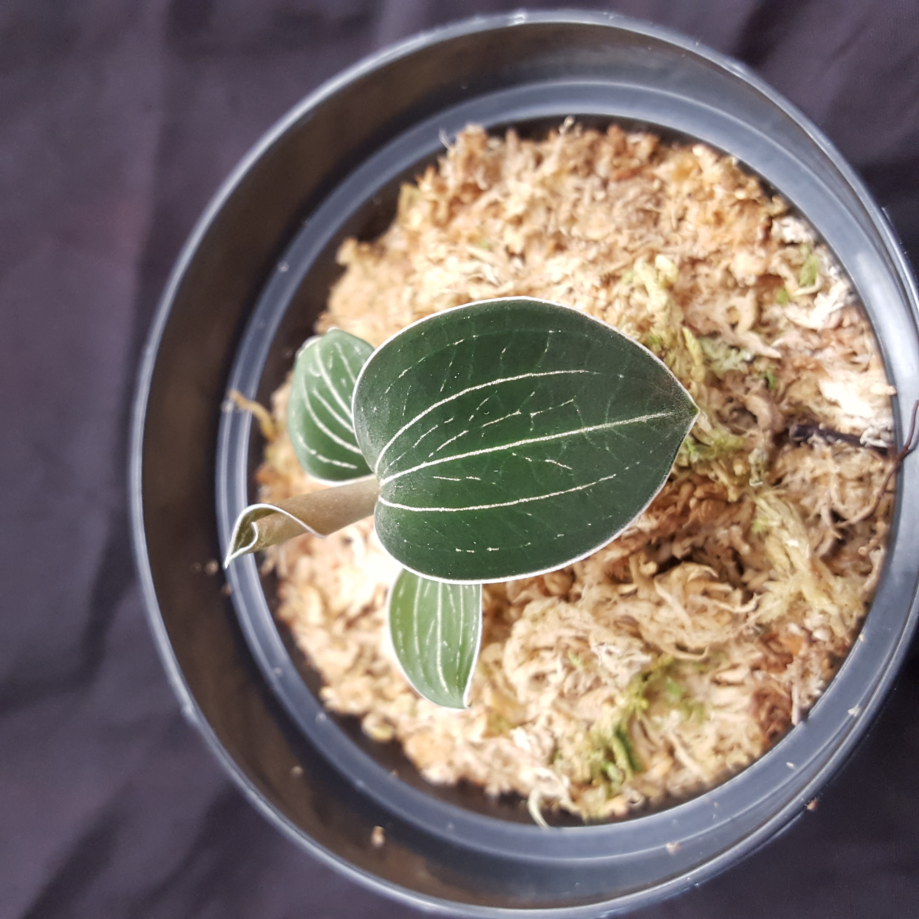 Anoectochilus lowii ‘Black Silk’ R.H. Torr. ex Loudon 1840 is an Asian jewel orchid from Borneo that impresses with its dark, almost velvety leaf colouring. As an inhabitant of the jungle floor, it should not be exposed to direct sunlight. It likes high relative humidity and should be kept in a constantly moist, but not wet, substrate. We keep it in pure Sphagnum and have had good experiences with it. The Anoectochilus lowii ‘Black Silk’ young plants for sale are potted and are similar to the Anoectochilus lowii ‘Black Silk’ shown in the pictures. They are best kept at normal room temperature, if possible in an open glass container such as a lantern, a wide vase, a terrarium or something similar. Please fertilise sparingly and, if possible, only use rainwater for watering. The pictures shown are examples, the plant you purchase is similar to the pictures.