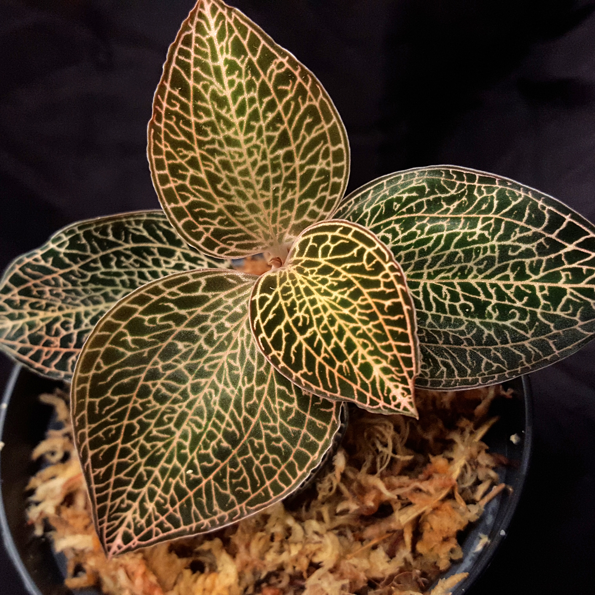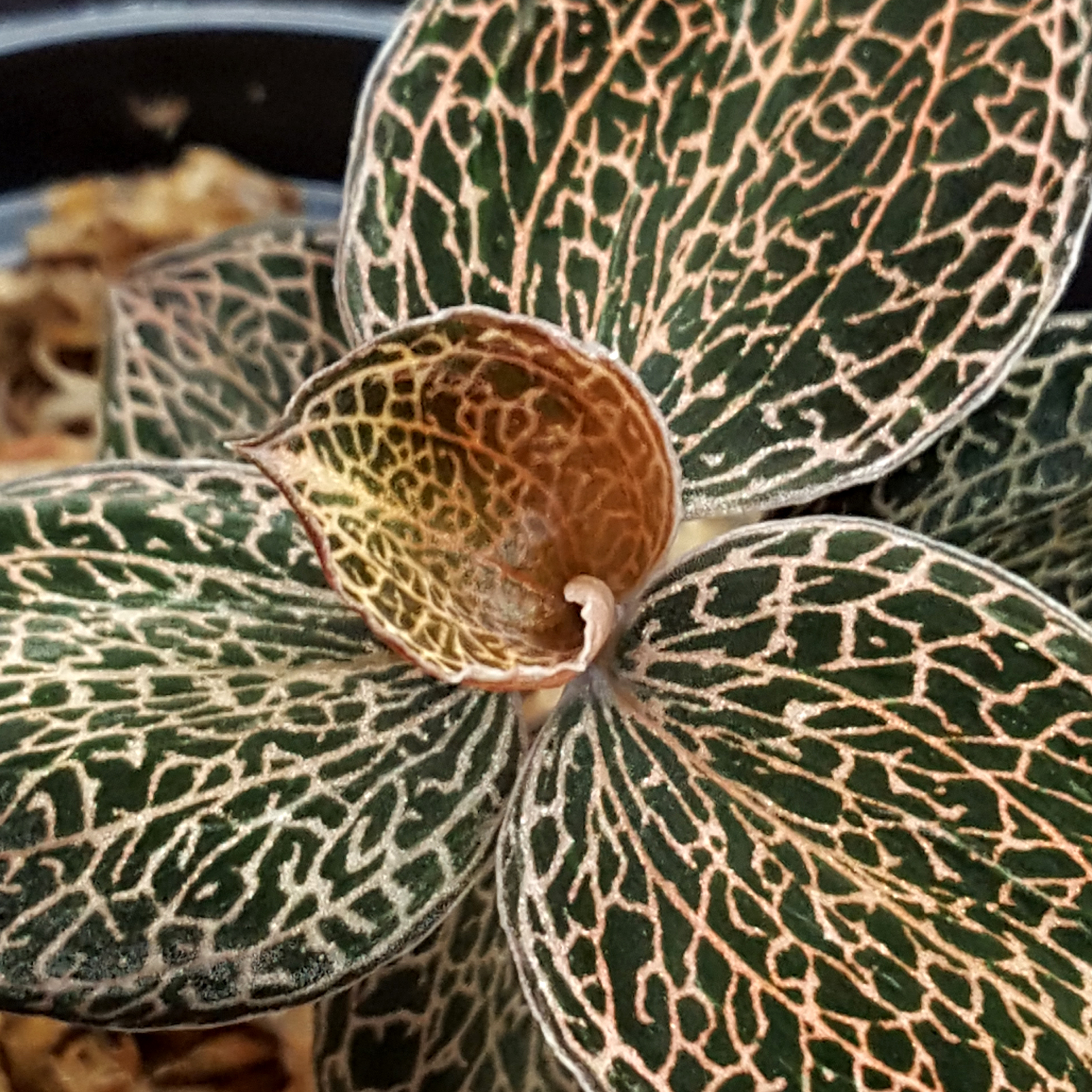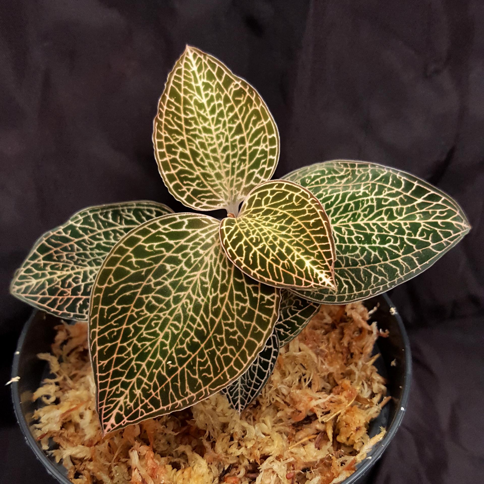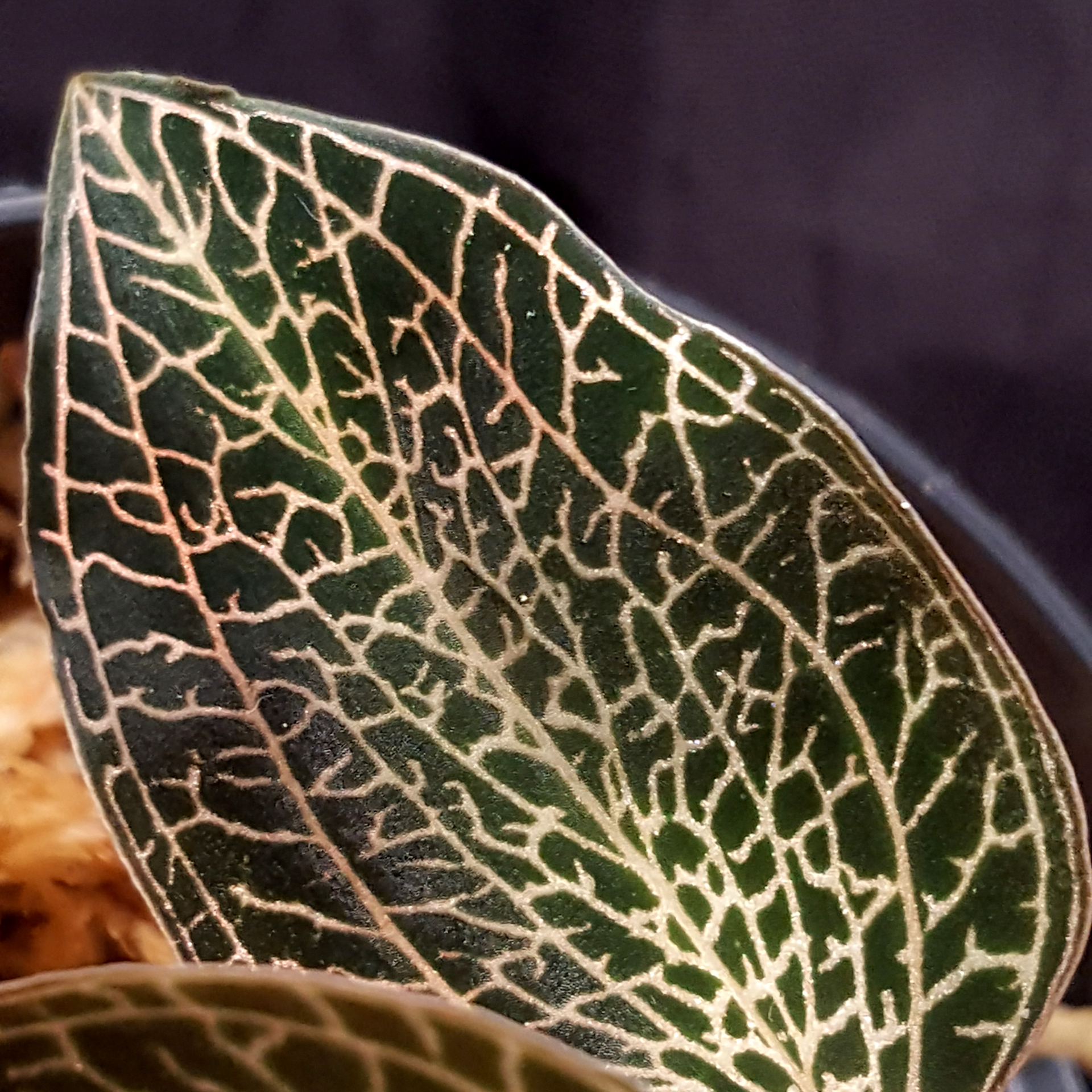 It is quite a special play of colours how the multi-coloured reddish golden leaf veins of the Anoectochilus roxburghii ‘Bellissima’ stretch across the leaf surface of this jewel orchid. It is very difficult to capture this play of colours with the camera, but I hope that the pictures will give you a good impression of this jewel orchid. Anoectochilus roxburghii ‘Bellissima’ is a variety selected in Japan. It will certainly be a highlight in your jewel orchid collection. Please avoid direct sunlight and wet substrate - the substrate should always be moist, but never waterlogged. Most jewel orchids die if their roots are wet. In their natural environment, the roots, which are covered with an extraordinary amount of root hairs, grow in the uppermost litter layer of the forest floor. Anoectochilus roxburghii ‘Bellissima’ thrives in temperate conditions, i.e. feels at home at normal room temperature. In Asia it is known as the queen of medicinal herbs. The pictures shown are examples, the plant you purchase is similar to the pictures.