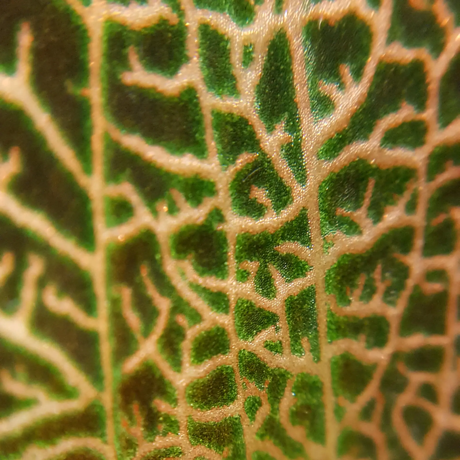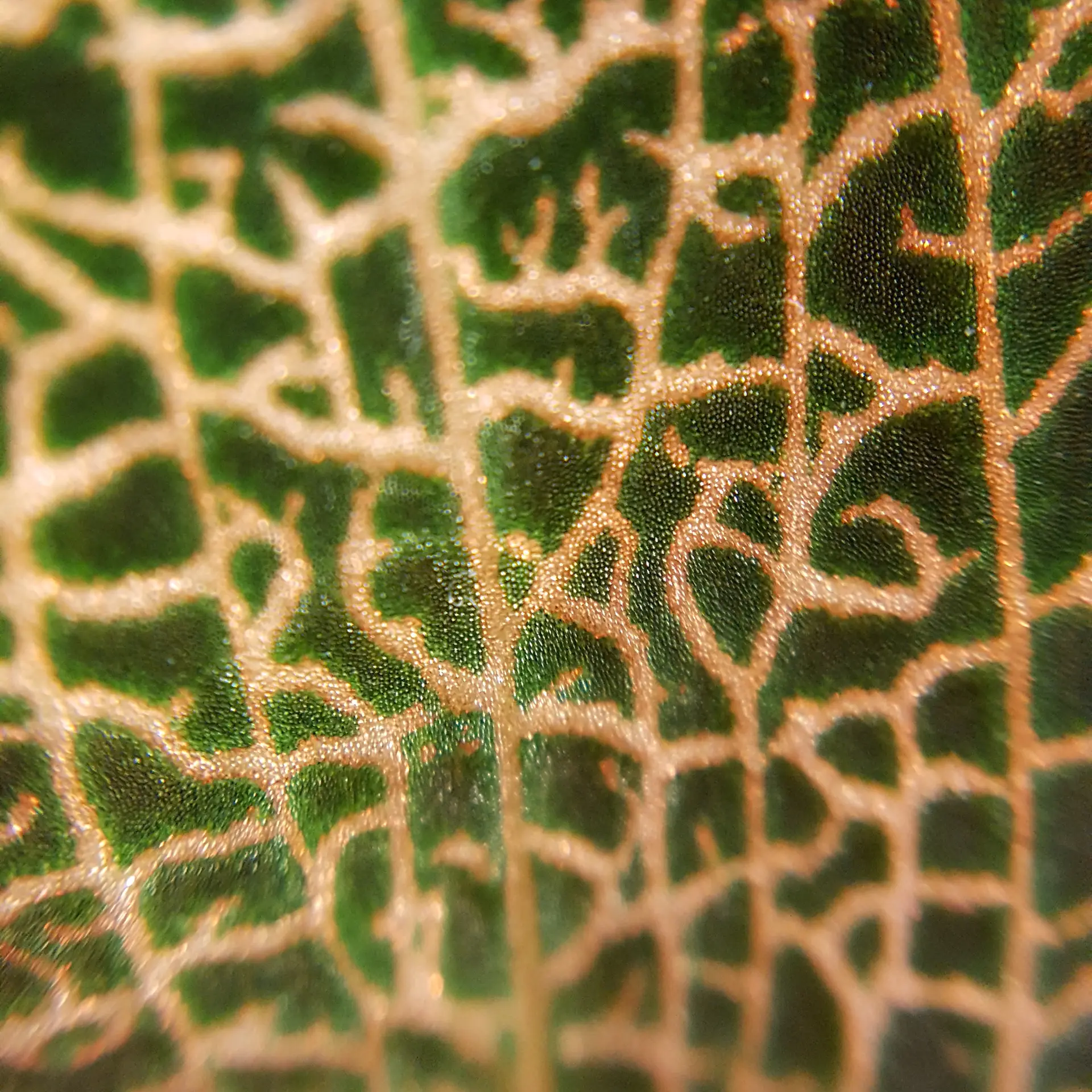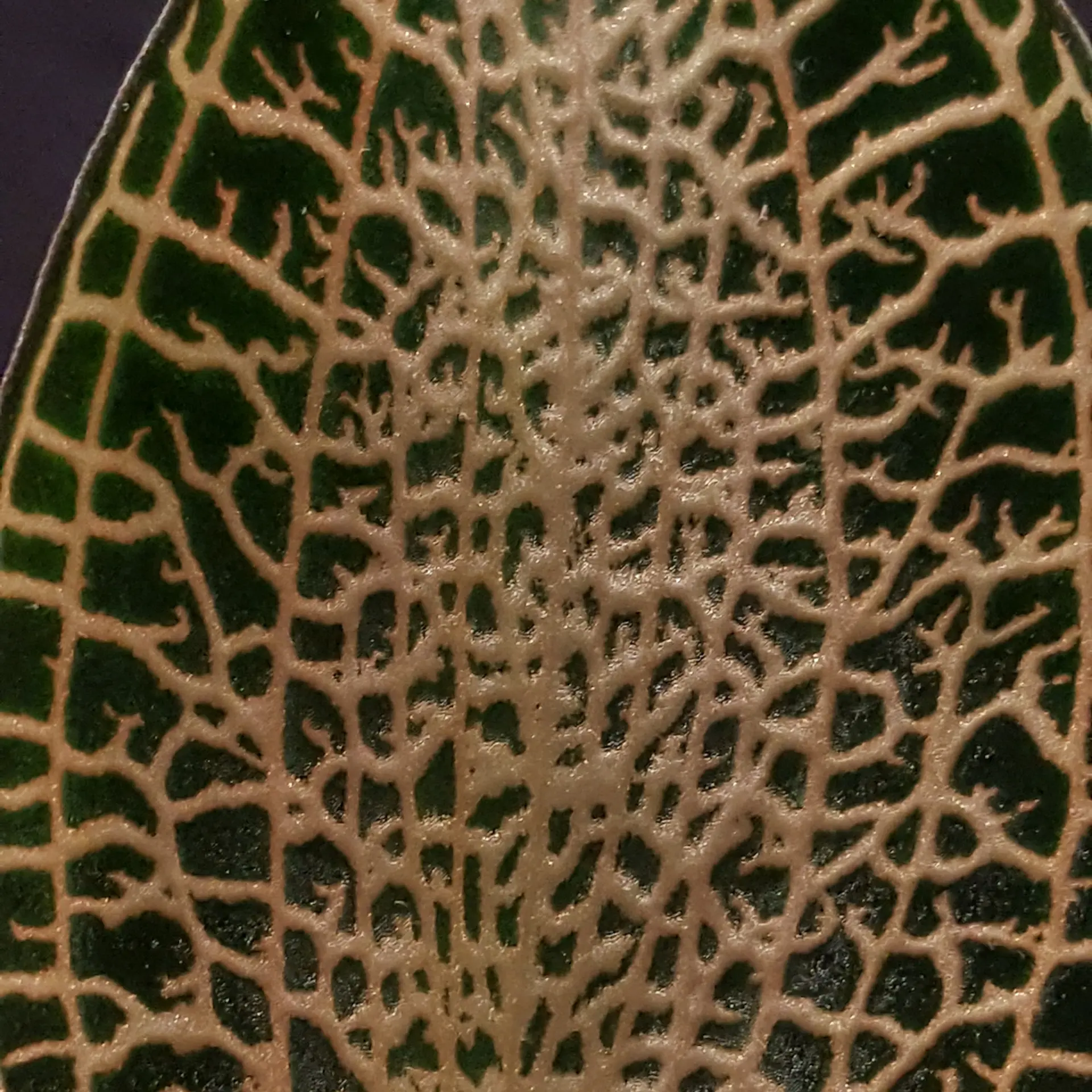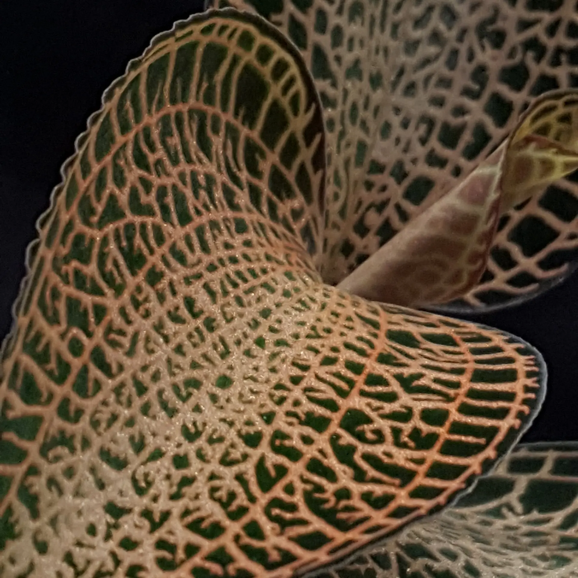 It is quite impressive how the gold-coloured veins of the Anoectochilus roxburghii ‘Golden Fleece’ run across the leaf surface of this jewel orchid. It is almost impossible to capture this play of colours on camera, but I hope that you will be enchanted by the pictures. Anoectochilus roxburghii ‘Golden Fleece’ is a variety selected in Japan. It will certainly be a highlight in your jewell orchid collection. Please avoid direct sunlight and wet substrate. Most jewel orchids die if their roots are wet. In their natural environment, the roots, which are covered with an extraordinary amount of root hairs, grow in the top litter layer of the forest floor. Anoectochilus roxburghii ‘Golden Fleece’ thrives in temperate conditions, i.e. feels at home at normal room temperature. In Asia it is known as the queen of medicinal herbs. The pictures shown are examples, the plant you purchase is similar to the pictures.
