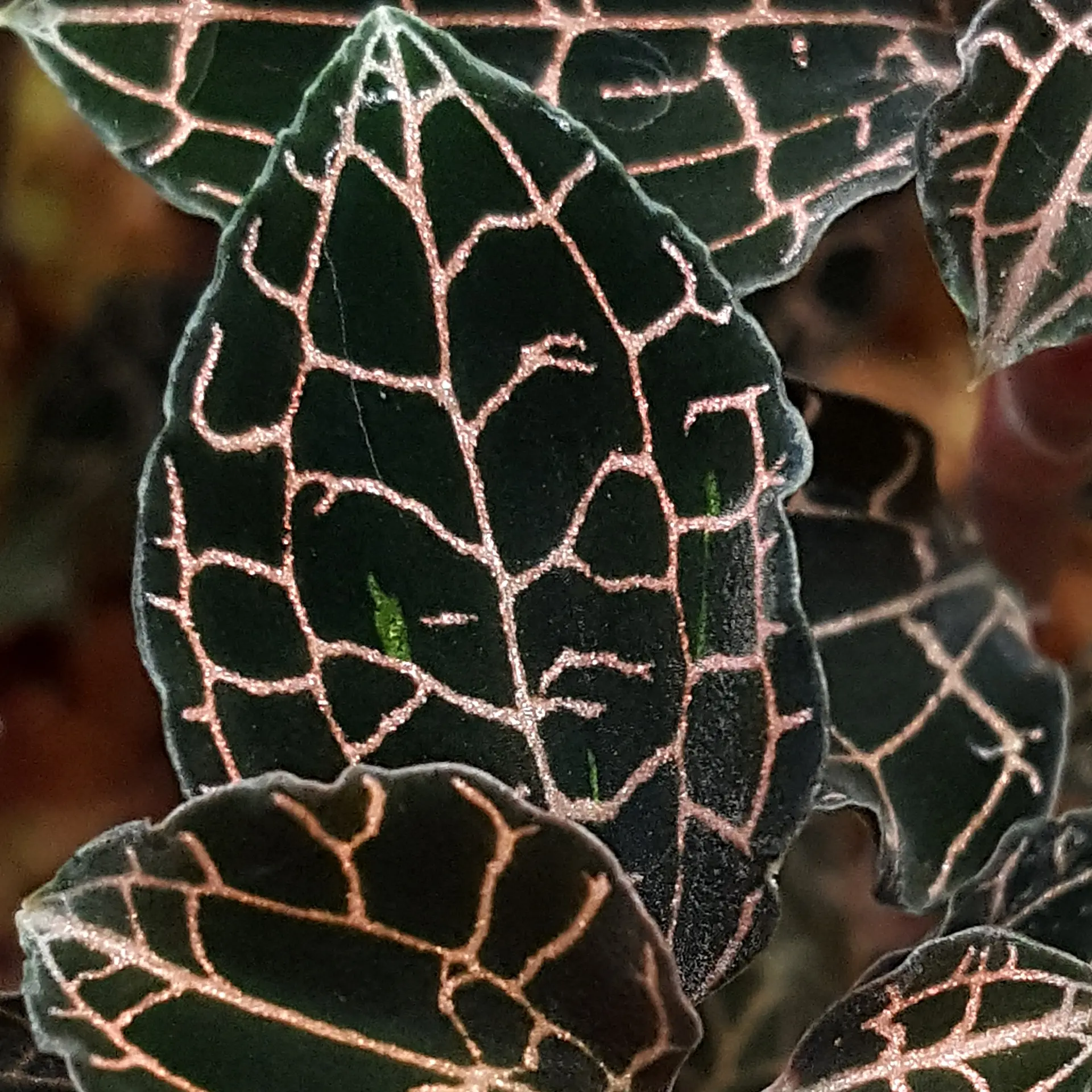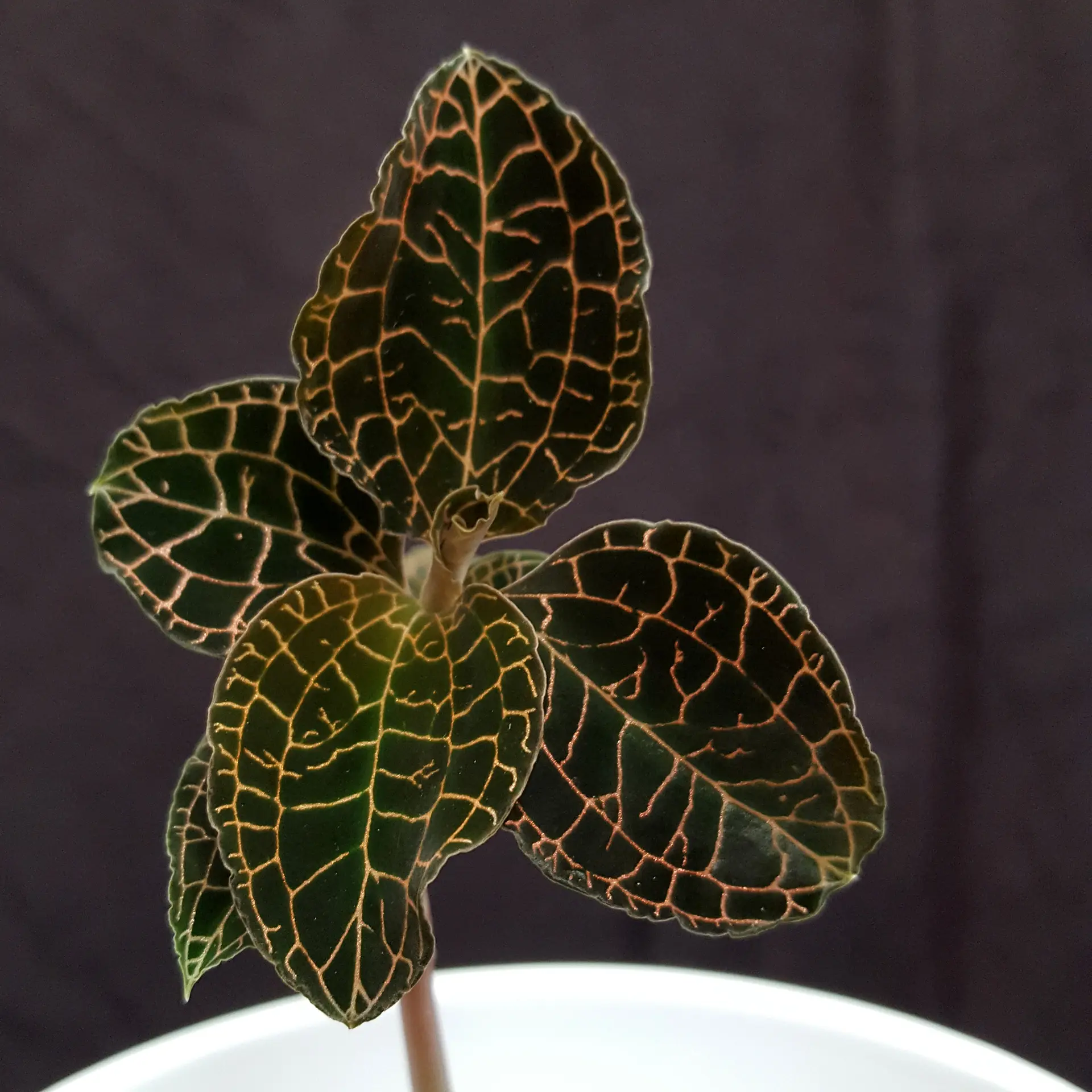 There are several cultivars of Anoectochilus roxburghii (Wall.) Lindl. 1832, one of which is Anoectochilus roxburghii ‘Regenbogenforelle. This jewel orchid is easy to care for at room temperature in a location protected from sun. The coarse-meshed veining of the leaves is particularly attractive. Please fertilise sparingly, as Anoectochilus roxburghii ‘Regenbogenforelle’ grows slowly. We recommend growing in high relative humidity. The substrate should only be moist, but not dripping wet. The pictures are examples, you are purchasing a similar plant.