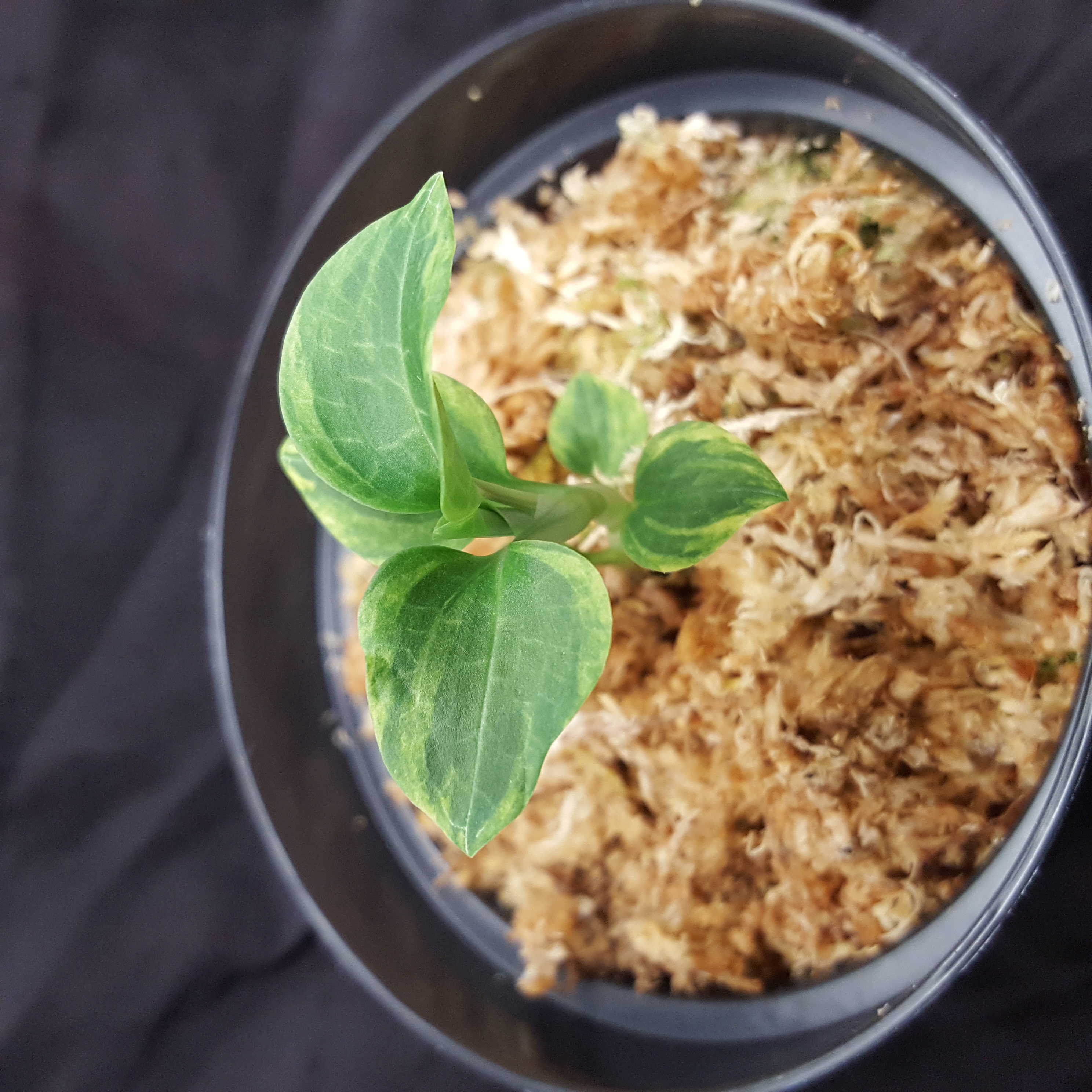 has a wide distribution area in Southeast Asia, so this jewel orchid is correspondingly adaptable. However, it should be kept in a temperate to cool environment - excessively high temperatures do not suit it in the long term. It also likes a loose, moist substrate; waterlogging does not suit it and will lead to the plant's demise. Please avoid direct sunlight, otherwise the few green leaves present will fade. The pictures shown are examples, the plant you purchase is similar to the pictures. You are buying a young plant.